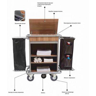 Эта профессиональная тележка разработана с учётом потребностей персонала в сфере гостеприимства и обеспечивает максимальную эффективность при ежедневной уборке. Прочный и износостойкий дизайн делает её идеальным выбором для отелей, хостелов и других объектов с высокой проходимостью.