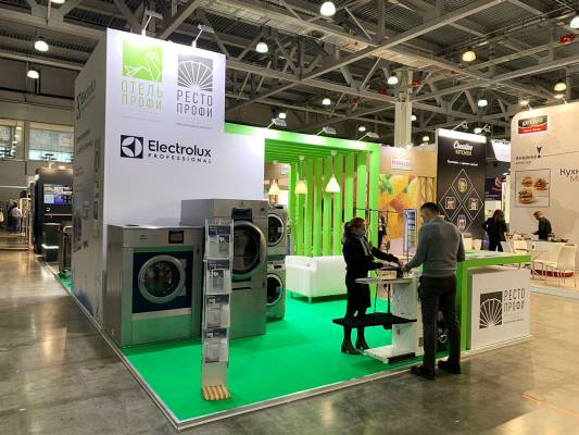 На нашем стенде были представлены товары для оснащения номерного фонда и общественных зон. Отдельную часть стенда гордо заняло профессиональное прачечное оборудование Electrolux Professional.